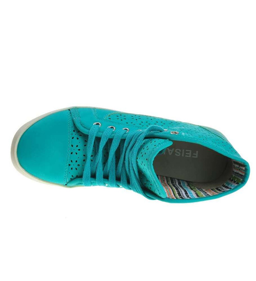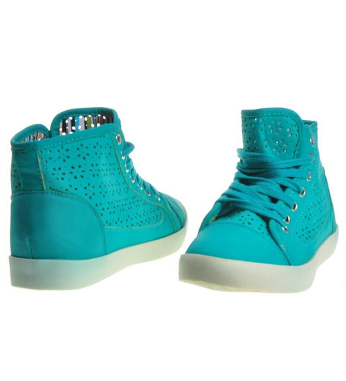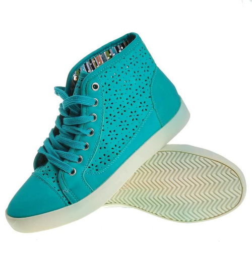 Seledynowe sznurowane trampki na platformie /G8-3 12271 S396/