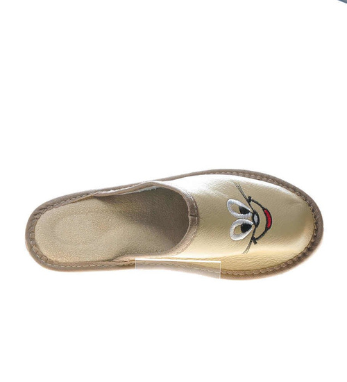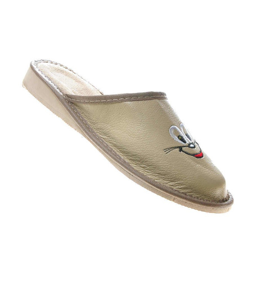 Skórzane beżowe kapcie damskie z wełną /D3-1 18465 S196/