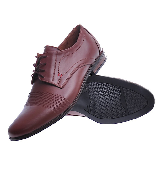 Wizytowe męskie pantofle ze skóry naturalnej Brązowe H5 9772 /533/1 987 S110/