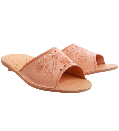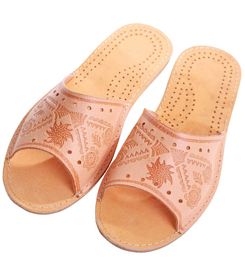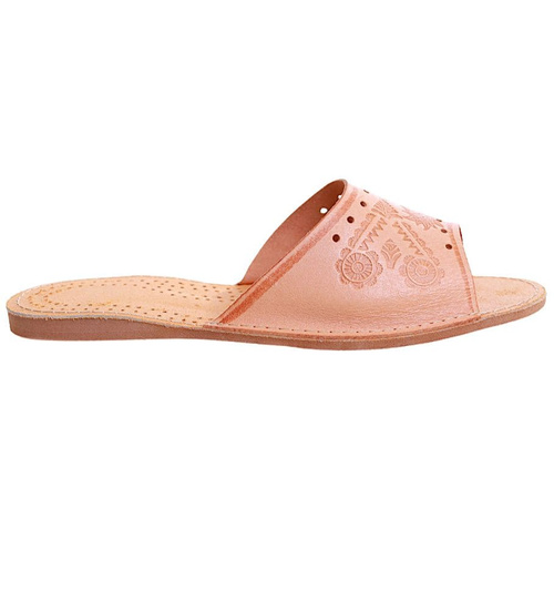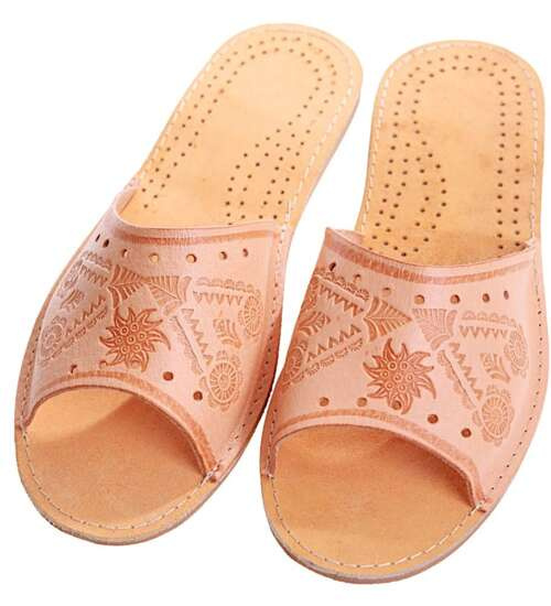 Skórzane klapki domowe kapcie z wzorem /E5-1 6138 S174/