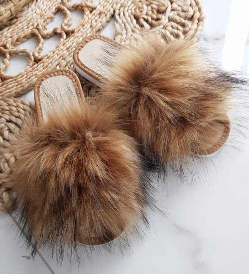 Klapki z futerkiem na grubym spodzie Rude /C4-1 6927 S199/