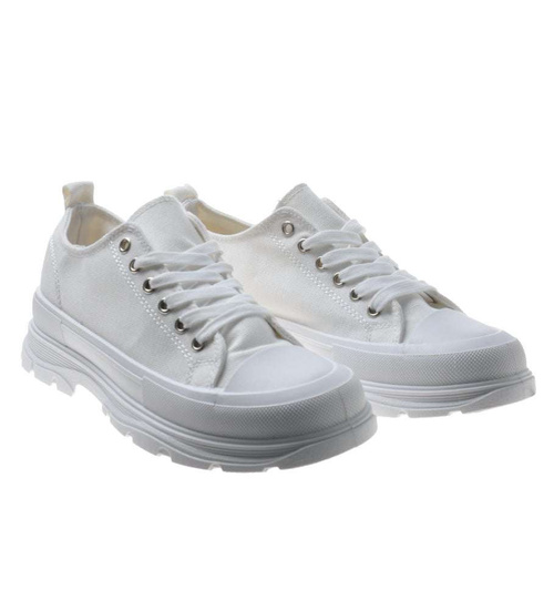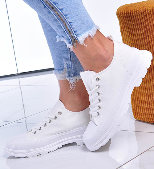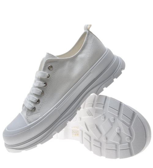 Białe damskie trampki creepersy /B1-3 7416 S298/