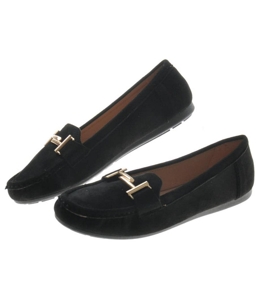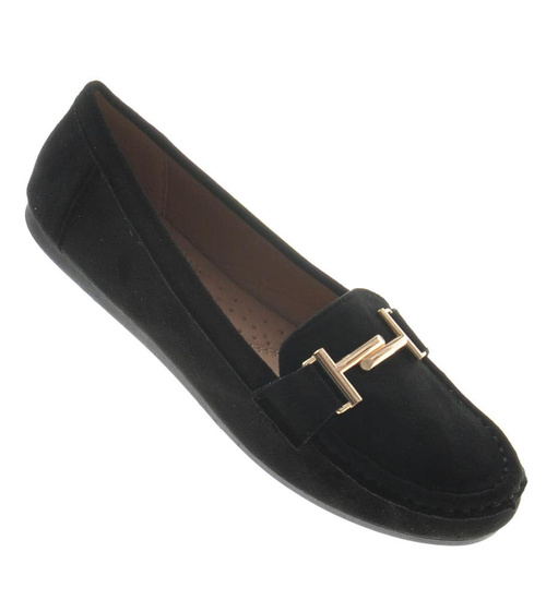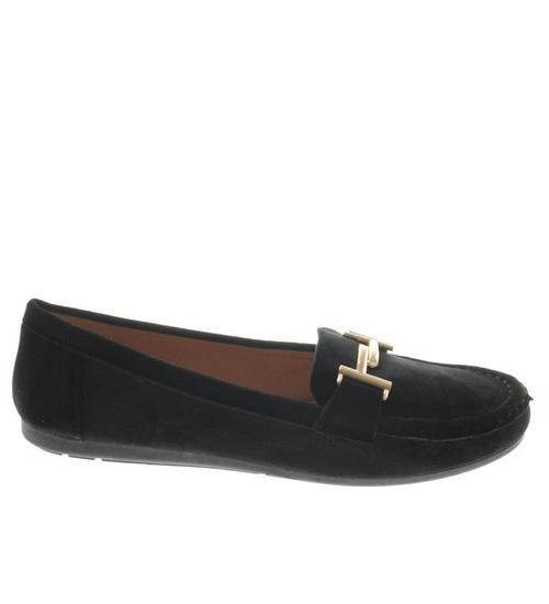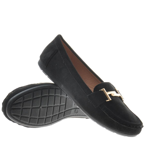 Zamszowe karmelowe baleriny lordsy z ozdobą /H2 18474 W9-84/