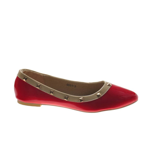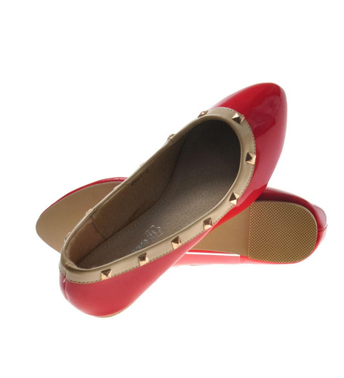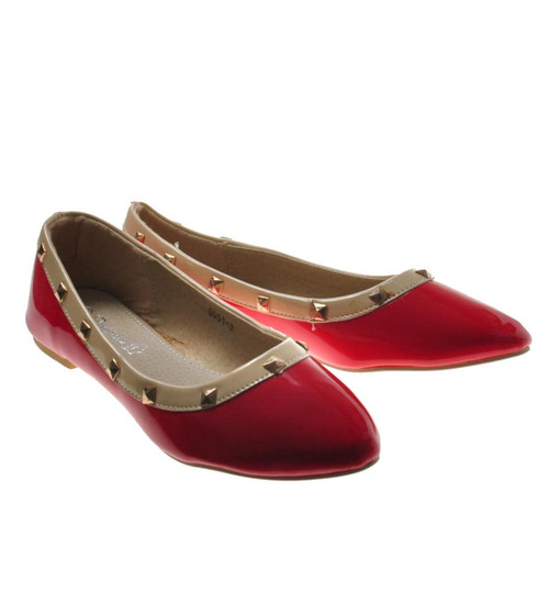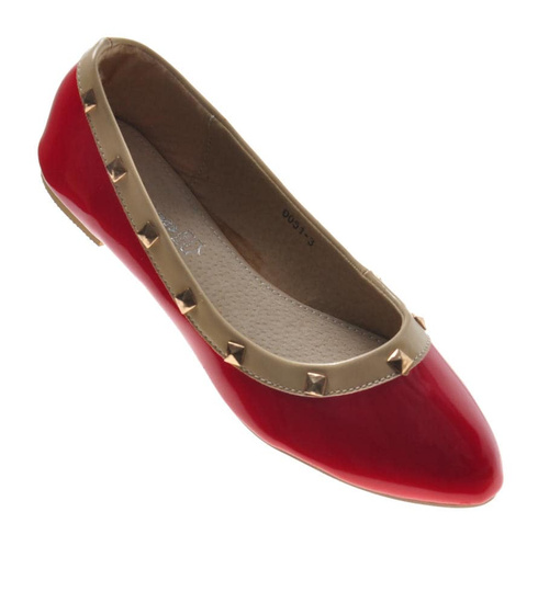 Czerwone wiosenne lakierowane balerinki /E1-2 7532 S191/