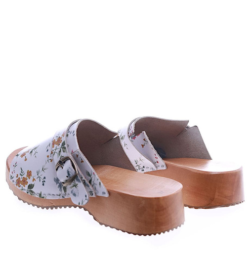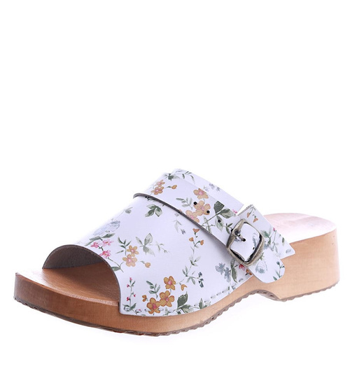Drewniaki chodaki klapki BIAŁE w kwiatki /F1-1 7668 S496/