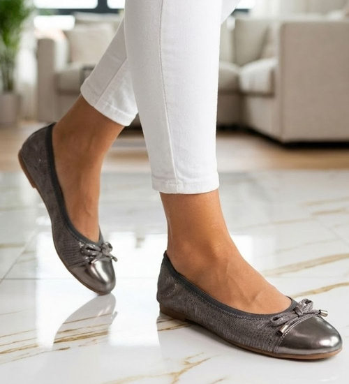 Elastyczne balerinki z kokardą Ciemno Szary /G13-2 7919 S192/