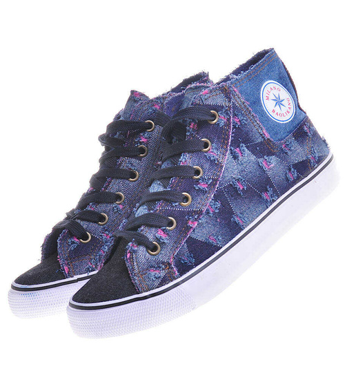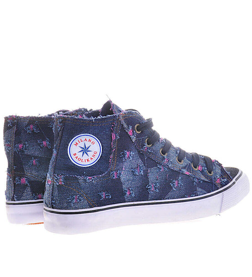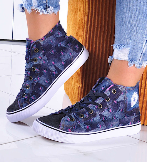 Wysokie damskie trampki z jeansu Granatowe /E5-2 6390 S098/