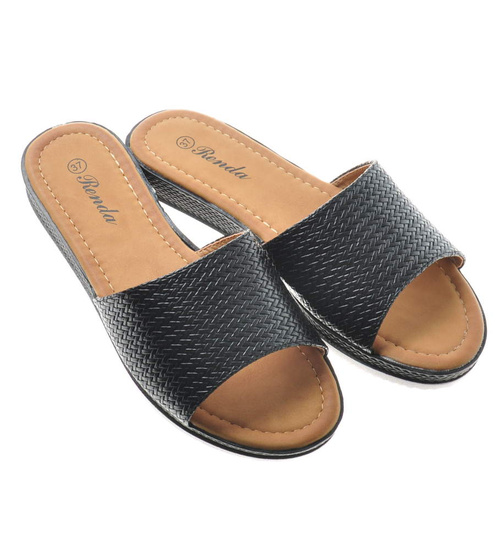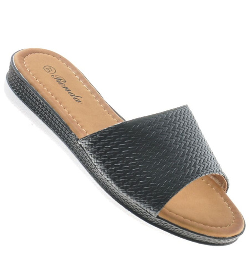 Czarne klapki damskie na płaskim obcasie /A6-2 16351 G232/