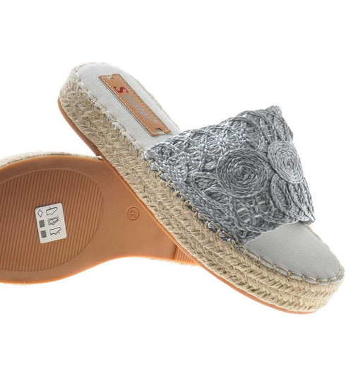 Beżowe klapki na espadryle na platformie /G7-3 17933 G287/