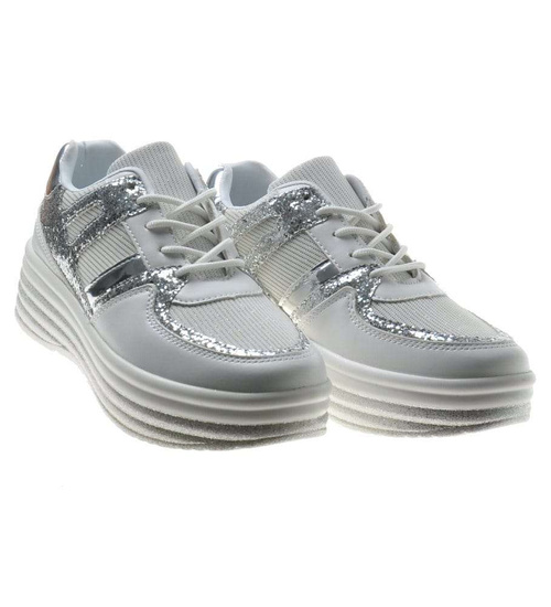 Sportowe damskie buty na platformie Białe /G2-3 8337 S213/