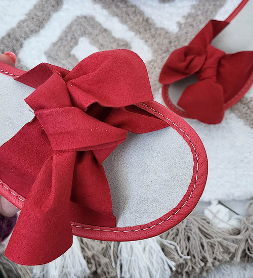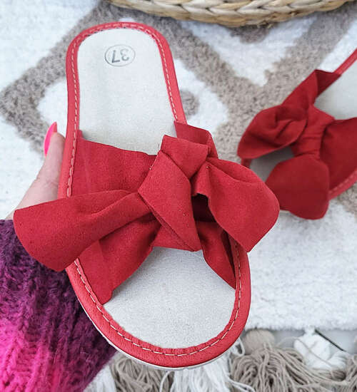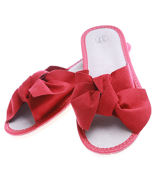 Skórzane domowe klapki z kokardą Bordowe /G5-1 8599 S194/
