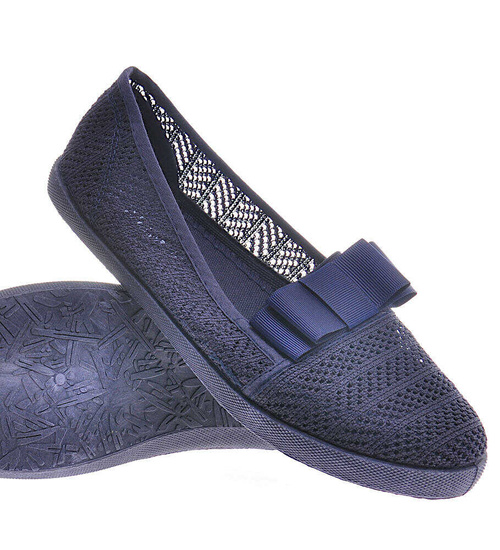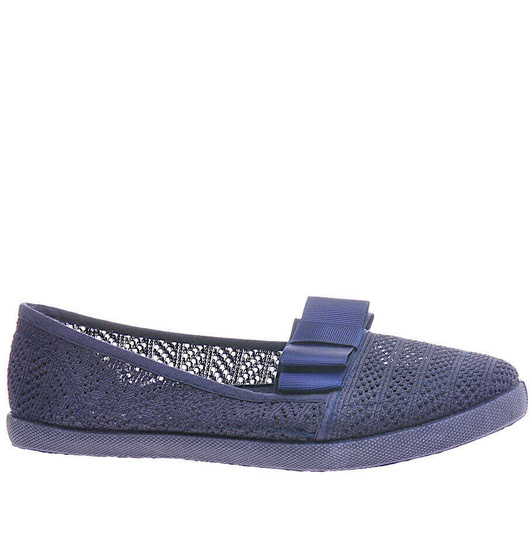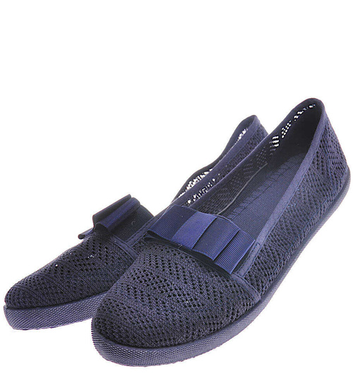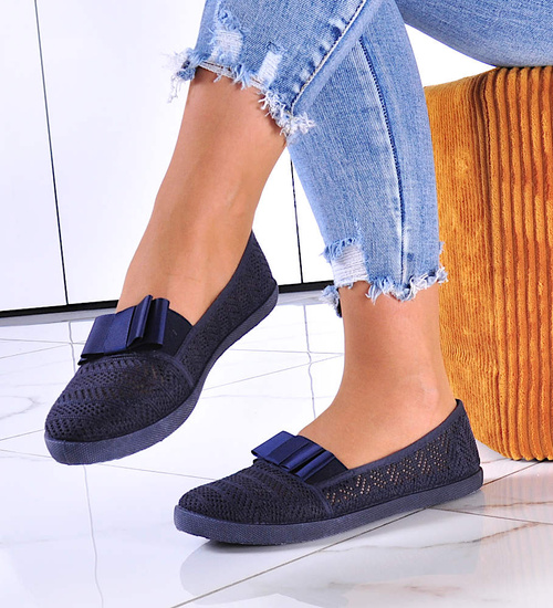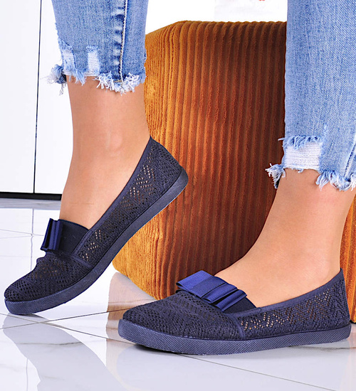 Koronkowe tenisówki damskie z kokardą Granatowe /C4-1 6117 S190/