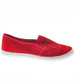 - Czerwone damskie tenisówki wykonane z koronkowego materiału.