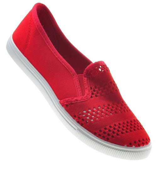 Ażurowe damskie tenisówki Czerwone /A6-2 8900 S154/