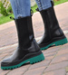 - Znakiem charakterystycznym prezentowanego obuwia jest zielona podeszwa.