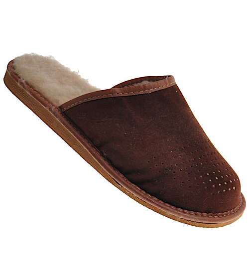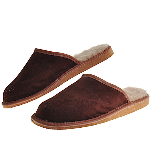 Grantowe męskie klapki domowe ze skóry naturalnej /B6-1 4980 S175/