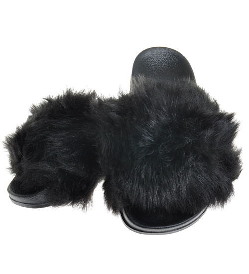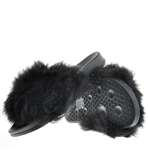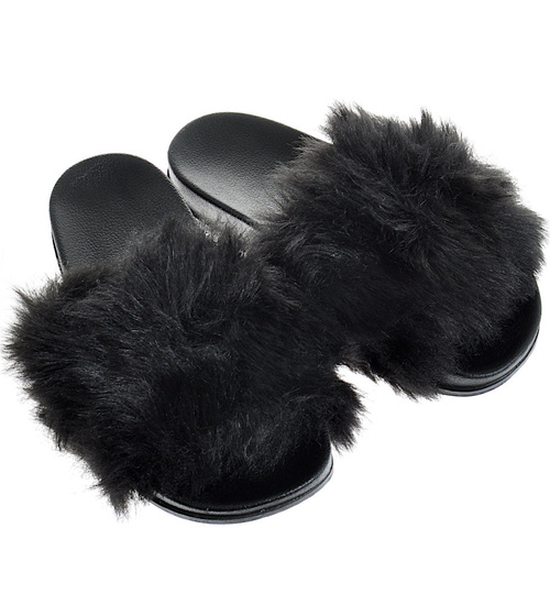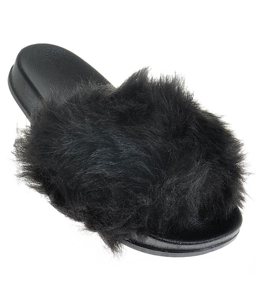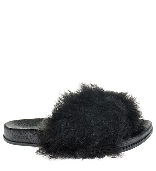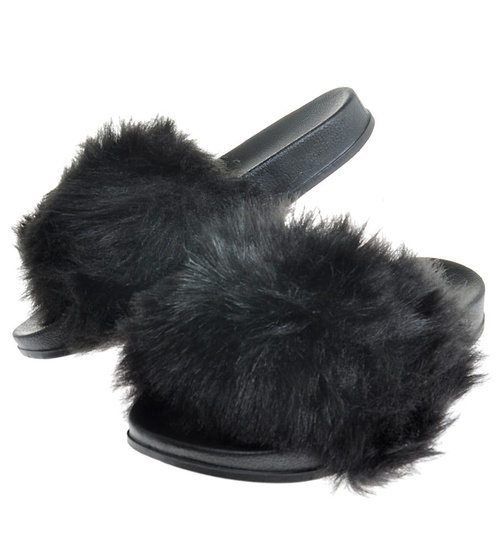 Gumowe damskie klapki z futerkiem Czarne /F9-1 10109 S293/
