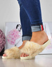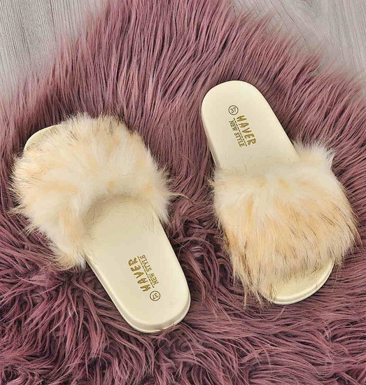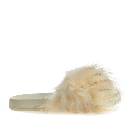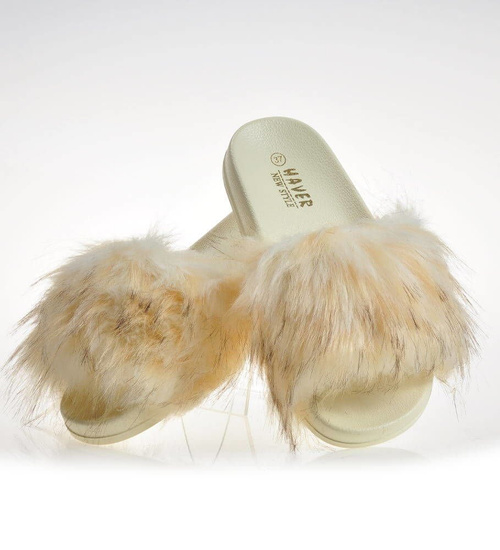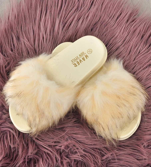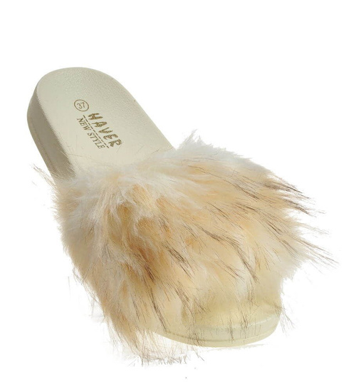Wygodne klapki z futerkiem kapcie BEŻOWY /G4-2 4208 S1077/