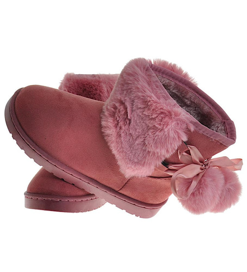 - Wykonane z zamszowej skóry ekologicznej w kolorze różowym.