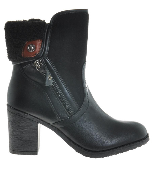 Czarne botki zimowe na grubym obcasie /E8-1 18558 G388/
