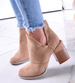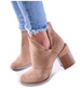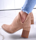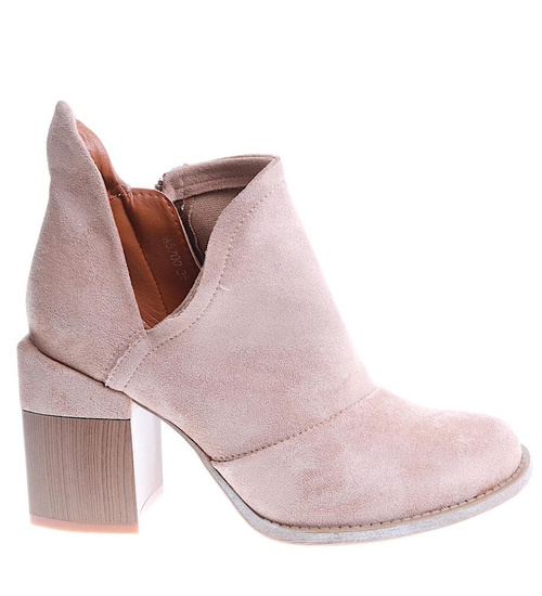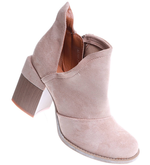 - Damskie botki wykonane z zamszowej skóry ekologicznej w kolorze khaki ocieniem wpadajacym w beż.