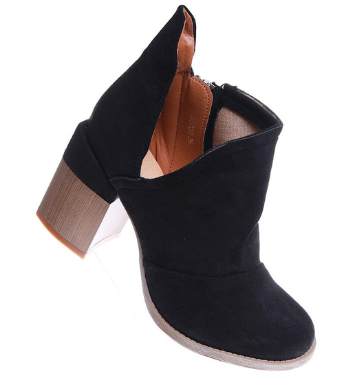 Modne botki damskie na klocku CZARNE /C2-3 6219 S392/