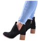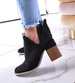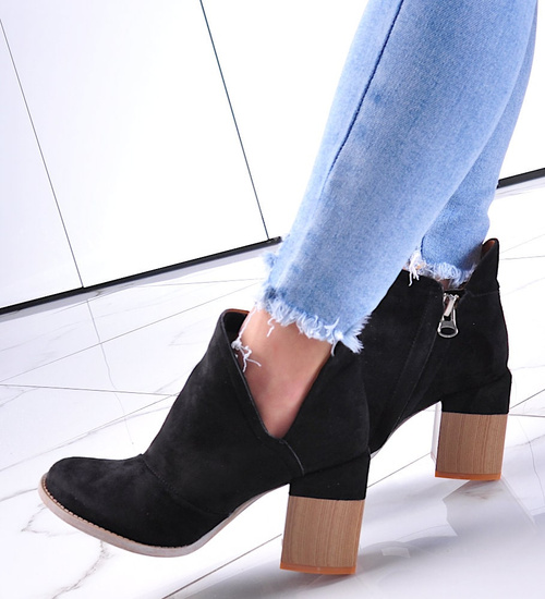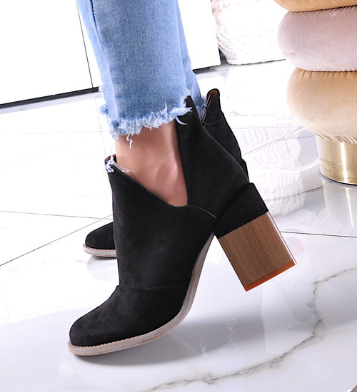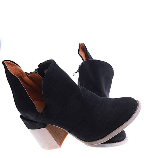 - Modne damskie botki wykonane z zamszowej skóry ekologicznej w kolorze czarnym.