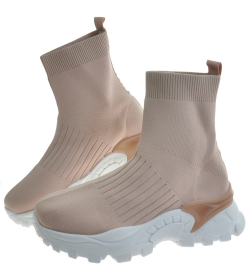 Beżowe trampki damskie /C7-3 10223 S396/