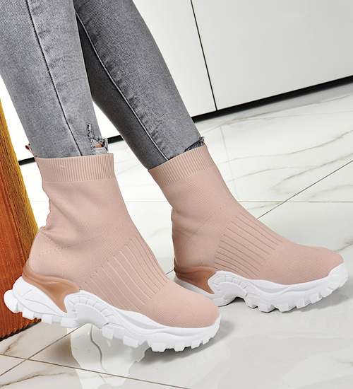 - Sportowe damskie trampki w kolorze beżowym.