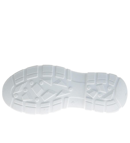 - Biała, gumowa podeszwa oraz wzmocnione noski.