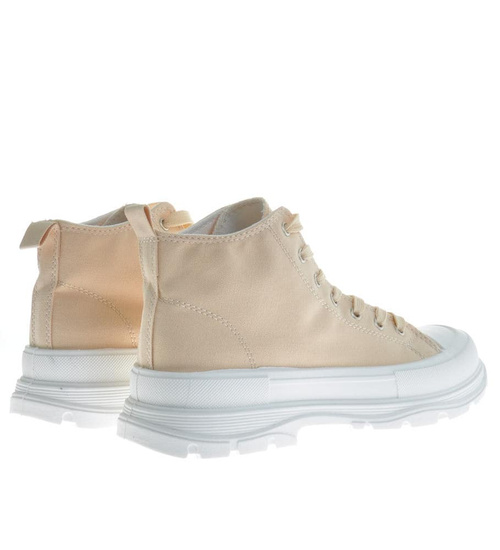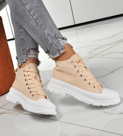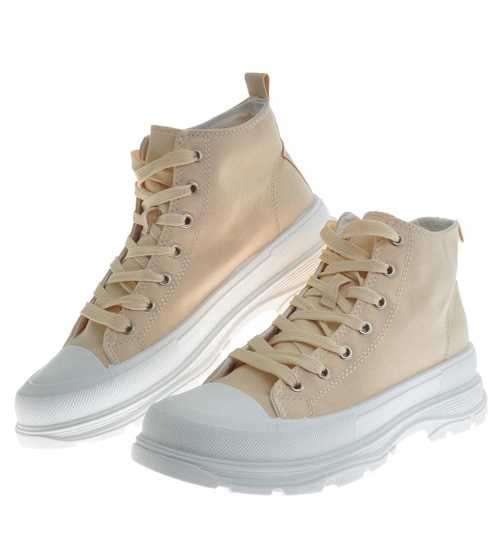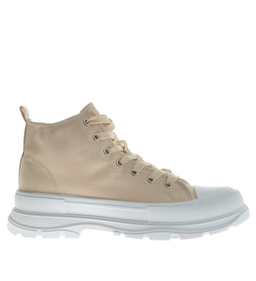 Damskie trampki sznurowane Beżowe /F5-3 10251 S314/