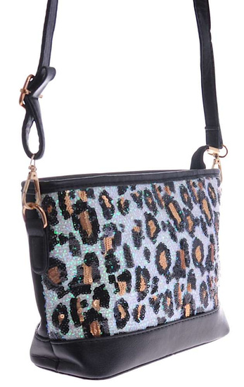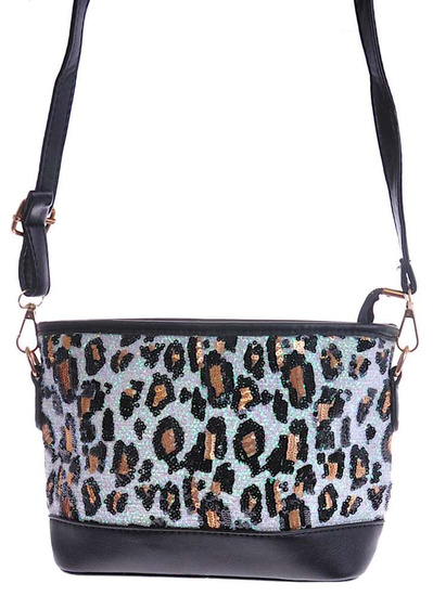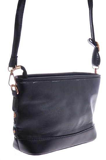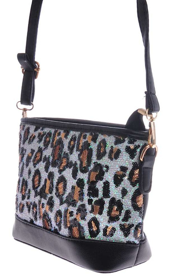 - Wykonana ze skóry ekologicznej w kolorze czarnym, przód ozdobiony cekinami.