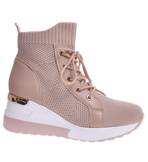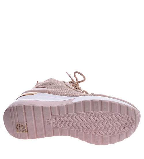 Sportowe damskie sneakersy z tkaniny Beżowe /C2-2 10723 T987/