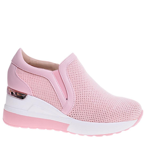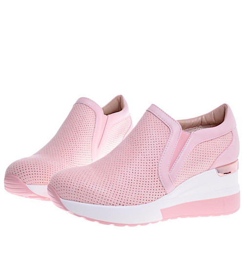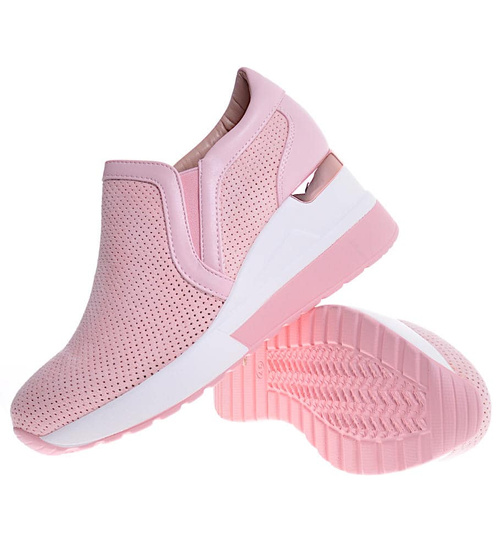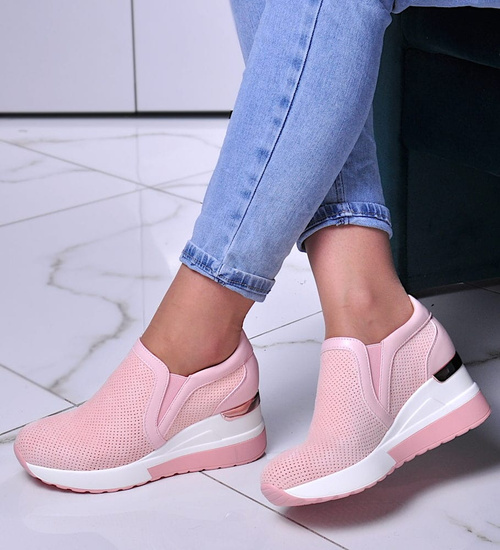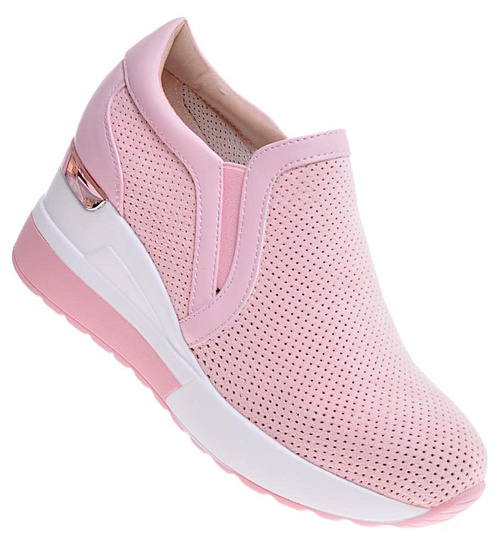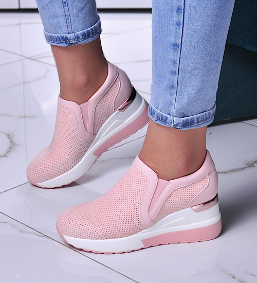 - Ażurowe buty sportowe damskie na koturnie.
