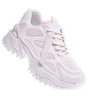 Sznurowane sneakersy damskie Beige /C7-1 10671 W435/