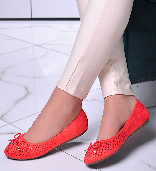 - Wygodne balerinki damskie w kolorze pomarańczowym.