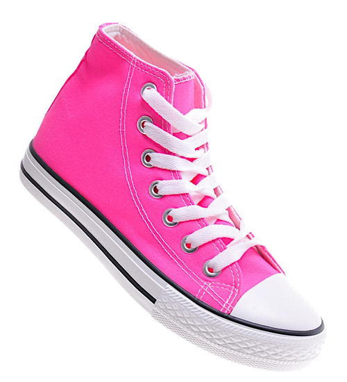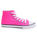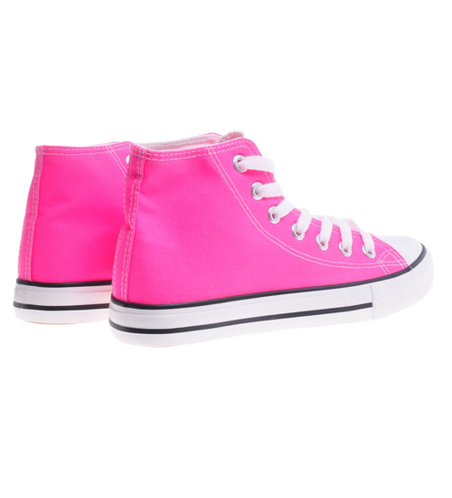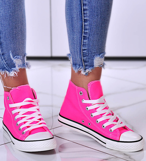 - Damskie trampki wykonane z tkaniny w kolorze różowym.