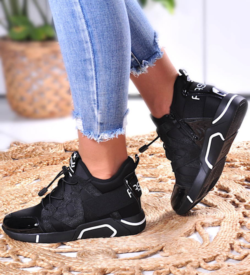 - Modne damskie sneakersy na koturnie w kolorze czarnym.
