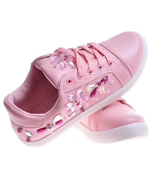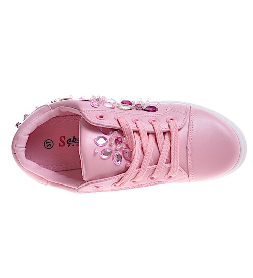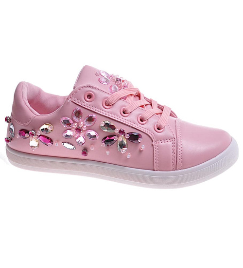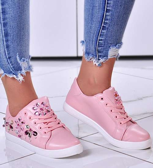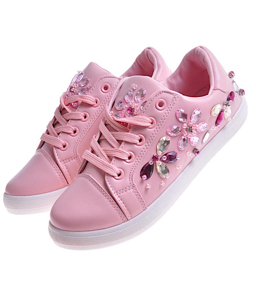 Damskie trampki z kamieniami Różowe /G9-3 10804 T128/
