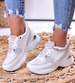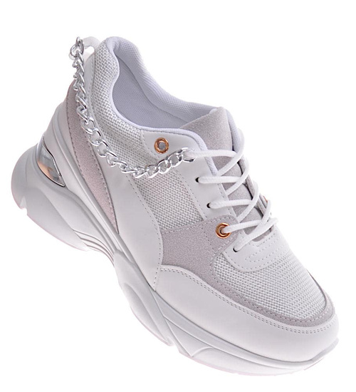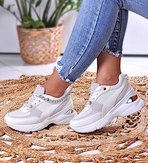 - Białe trampki sneakersy na stabilnym ukrytym koturnie.