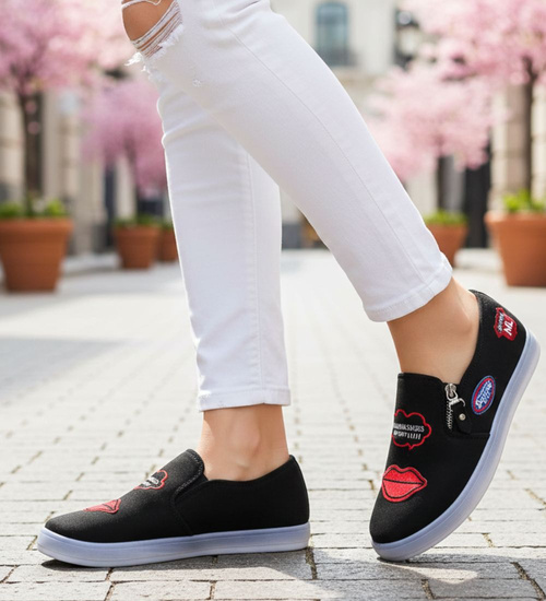 Zamszowe trampki slip on z ustami /E10-3 8422 S192/