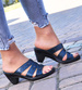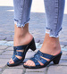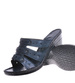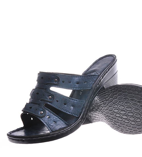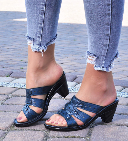 - Casualowe damskie klapki na obcasie wykonane z miękkiej skórki ekologicznej w ciemno zielonym kolorze.