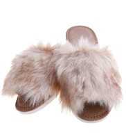 - Lekkie domowe klapki z czarnym futerkiem- modne buty które przyciągają uwagę.