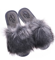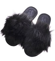 Czarne damskie klapki z kudłatym futerkiem Premium /E10-1 11319 S292/