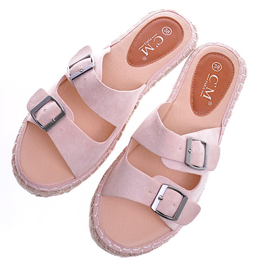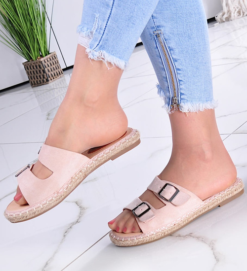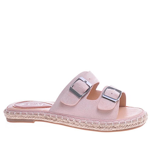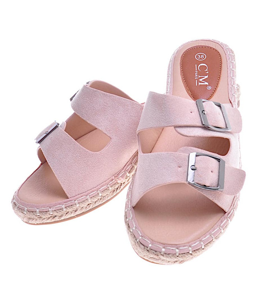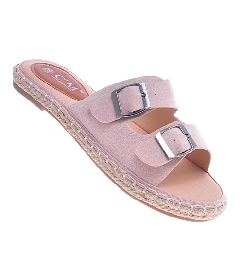 Zamszowe klapki damskie espadryle Nude /F7-22 11431 S392/
