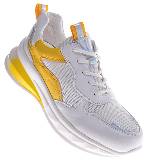 Białe żółte buty sportowe /D8-2 11521 T297/