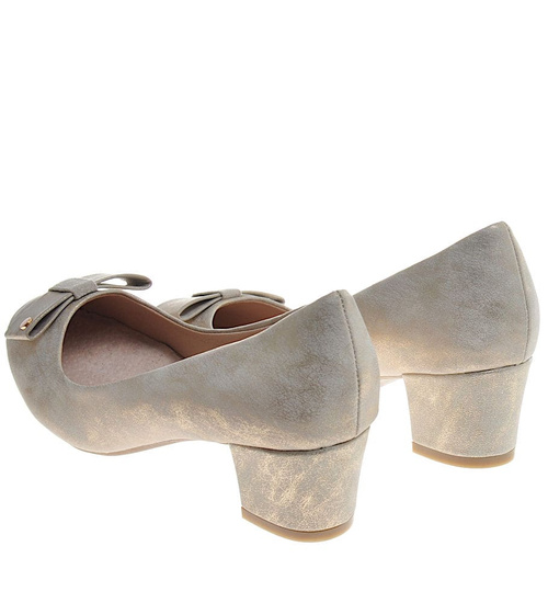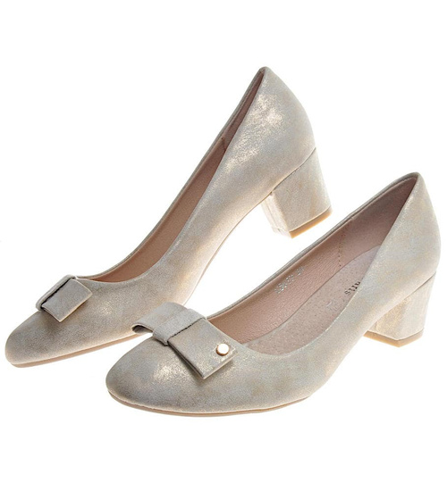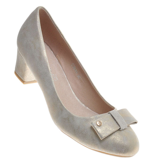 Złote czółenka na niskim obcasie /G6-2 11573 T492/