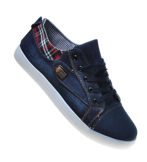 Sznurowane męskie trampki Granatowe /D2-1 AB168 T244/