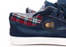 - Kolor granatowy został lekko przełamany przez bordową, kraciastą wstawkę oraz pomarańczowe przeszycia.