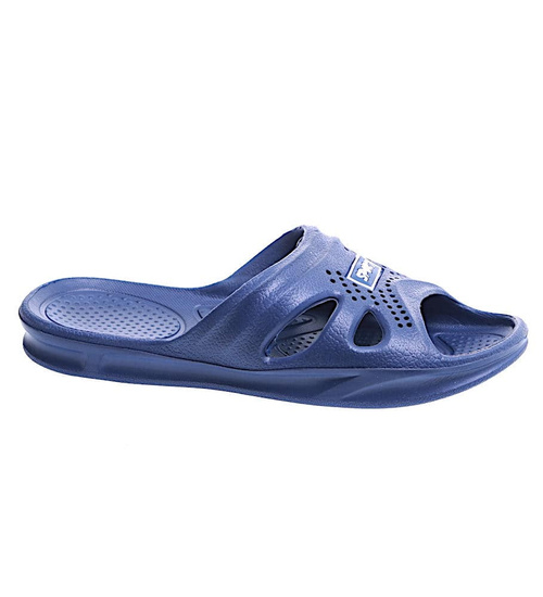 - Wodoodporne męskie klapki wykonane z gumowo piankowego materiału w kolorze granatowym.